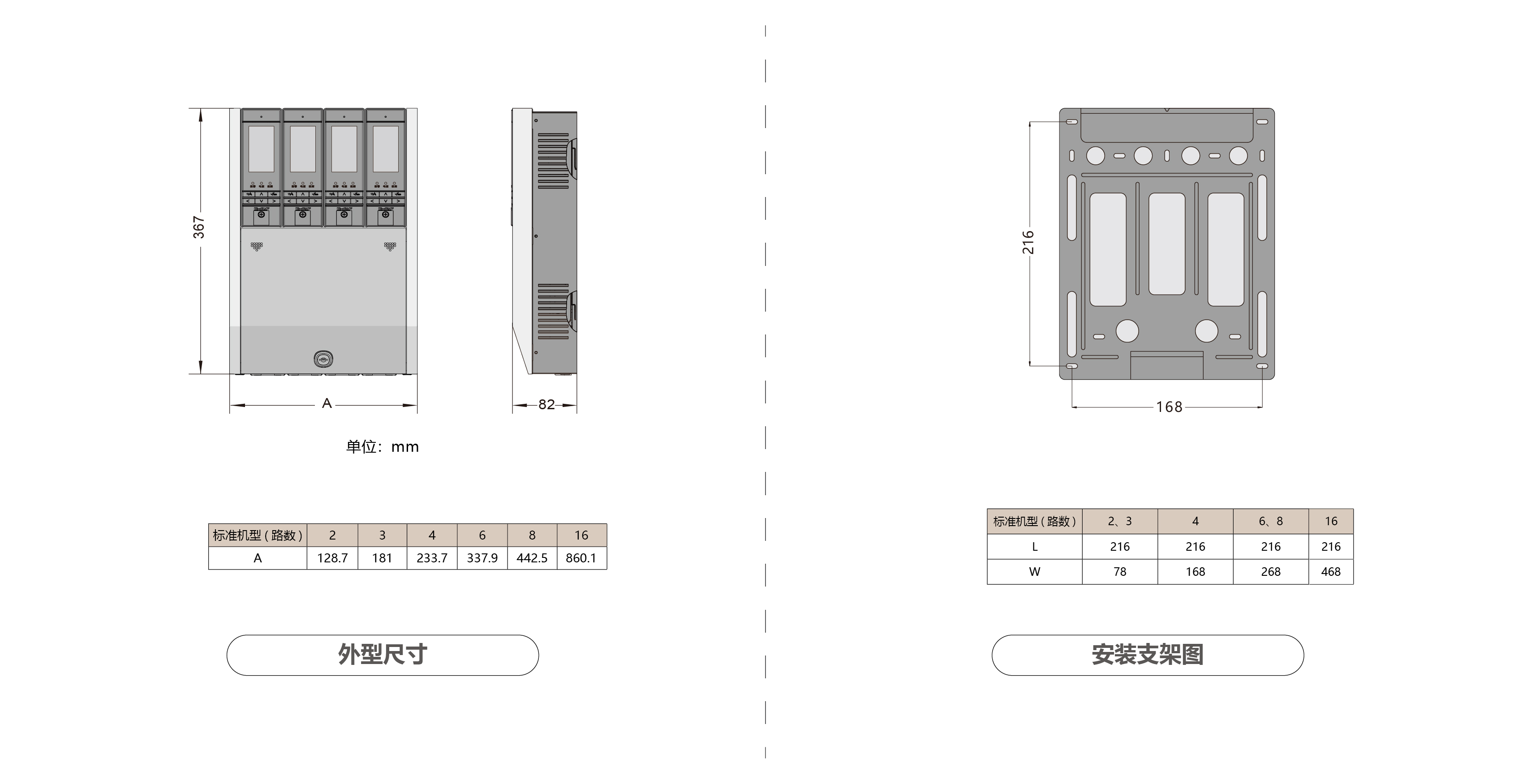 367x128.7x82 (2路), 367x181x82 (3路), |